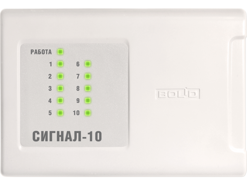 1 индикатор состояния прибора и 10 индикаторов состояния каждого из ШС